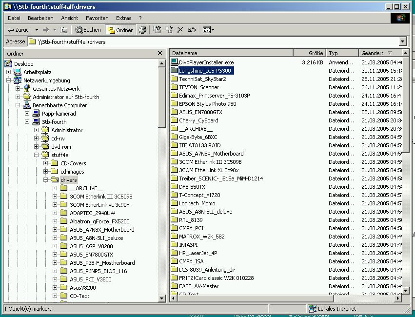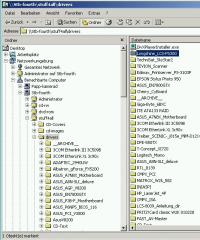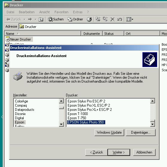 Es wird sicherlich nicht so sein, daß diese beiden Druckertreiber schon vorhanden sind. Daher muss man das Feld Datenträger anwählen und dann im Nezwerk unter \\stb-fourth\stuff4all\driver nach dem richtigen Treiber suchen.