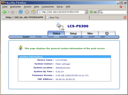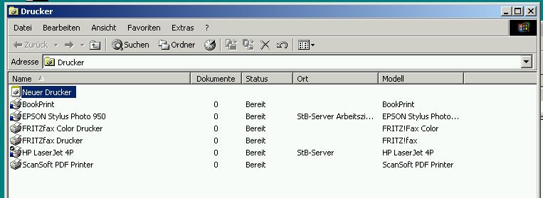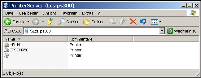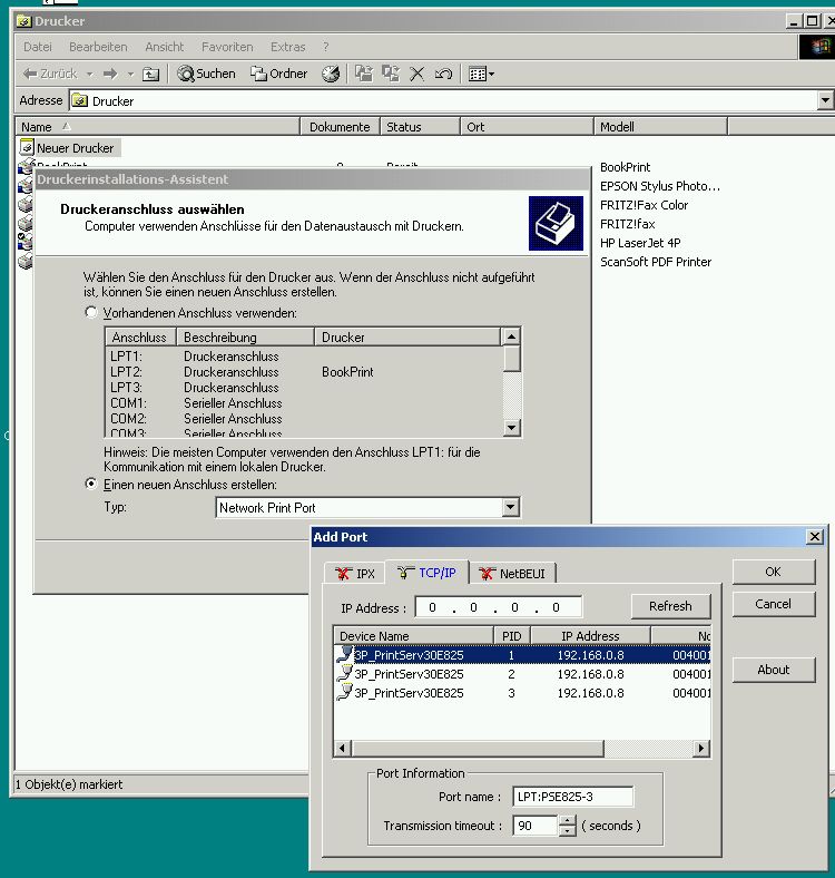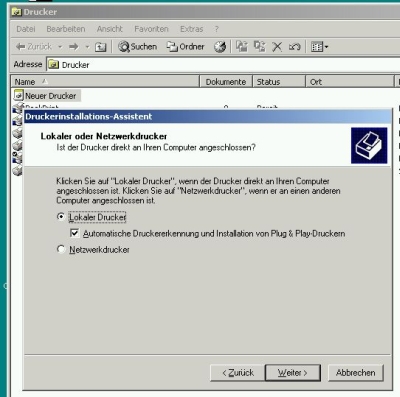 Danach kommt das Wichtigste: Man muss zuerst einen neuen Anschluß anlegen. Der kommt in diesem Fall vom Printserver: