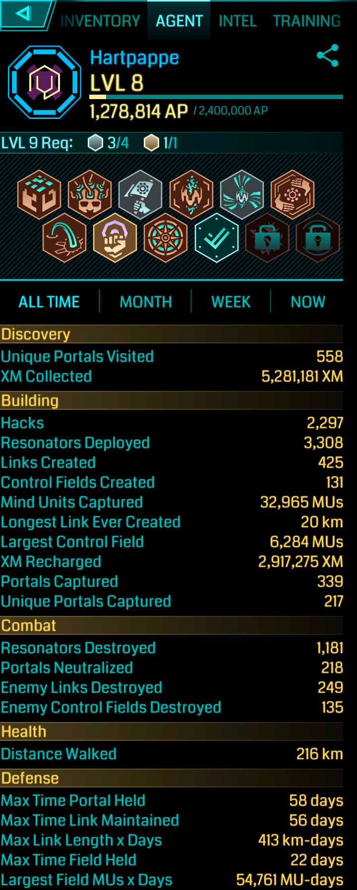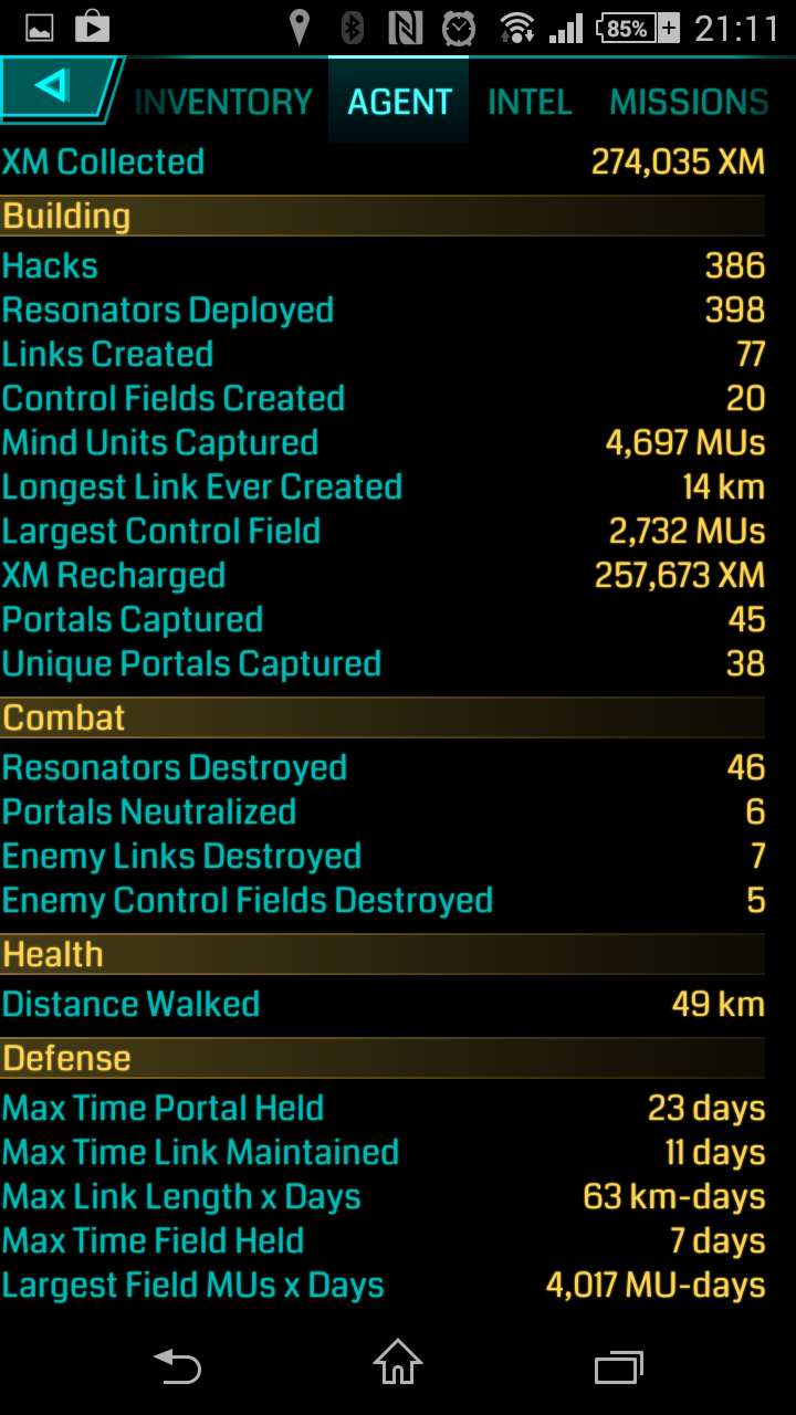 den Level 8 erreicht. Das war bis vor kurzem noch der höchste Spiellevel, aber nachdem sehr viele Spieler diesen Level erreicht hatten, haben die Leute der Spielefirma Niantic noch die Levels 9-16 eingeführt. So gesehen habe ich nun das Spiel zur Hälfte durchgespielt. Leider kann man das so auch nicht sagen, weil sich die Anzahl benötigter Punkte von Level zu Level verdoppelt, und man zu dem noch spezielle "Medaillen" braucht, um aufsteigen zu können. Wer genaueres wissen will, dem sei die deutsche Anleitung zu Ingress empfohlen: How not to suck at Ingress. Lokal: (How not to suckatIngress.pdf) downgeloaded am 26.07.2014. Details zu zum Spiel erfährt man auf: auf http://www.ingress.com/intel [INGRESS/GOOGLE+ Account bzw. eMail erforderlich]. Ich habe in Burbach einige Portale angemeldet, denn im Moment gibt es in Burbach nur 2 Portale, eines in Würgendorf und insgesamt 5 Stück in Burbach Wahlbach. Das ist deutlich zu wenig. In dieser Tabelle habe ich die Einzelheiten aufgezeichnet: PortaleBurbach.html Die Liste sollte gepflegt werden - im Zweifelsfalle müsste man die Portale nochmals bei NIANTIC anmelden. |