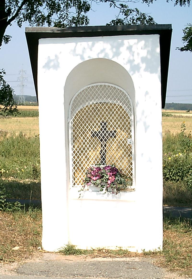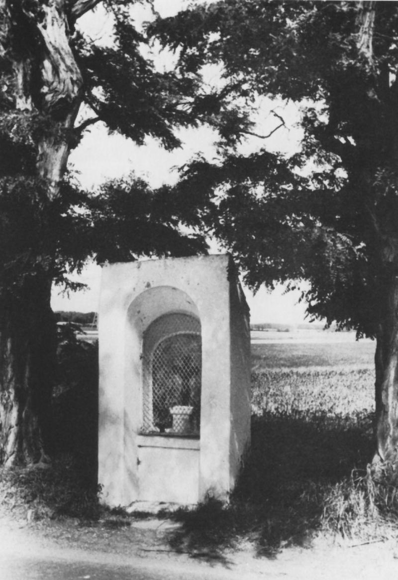 | Diese kleine Kapelle steht im übrigen in unmittelbarer Näche der zweiten Martersäule am Steudacher Weg. Auch hier wieder eine Abbildung aus DEM BUCH. Der Author dieser Hypertextseiten weiß nicht recht, wozu sie gut ist. Man sollte mal fragen! |