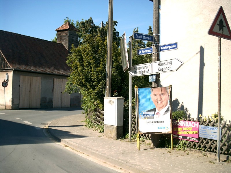 Dies ist ein Blick vom Wegweiser in Richtung Osten nach Büchenbach in den östlichen Teil von St. Michael hinein. (Links ist die erste Steudacher Bushaltestelle) |